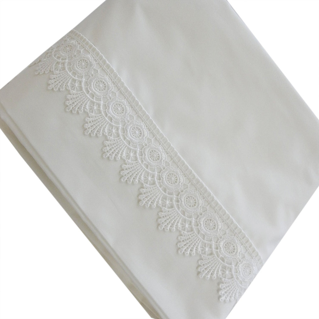 Alejandra Embroidered sheet set made from silky Soft 100% Cotton Sateen Made in the USA. The perfect fabric weight, sheet set comes complete with Flat sheet, Fitted Sheet & 2 Pillowcases.